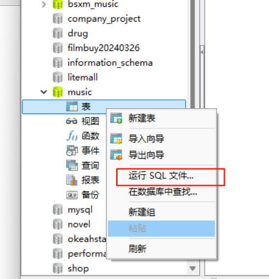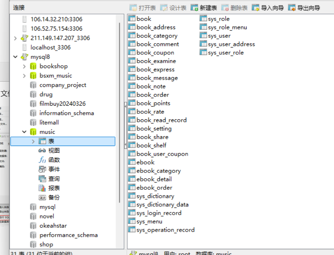 再刷新一下“music”的数据库就能看到已经导入进去的表了