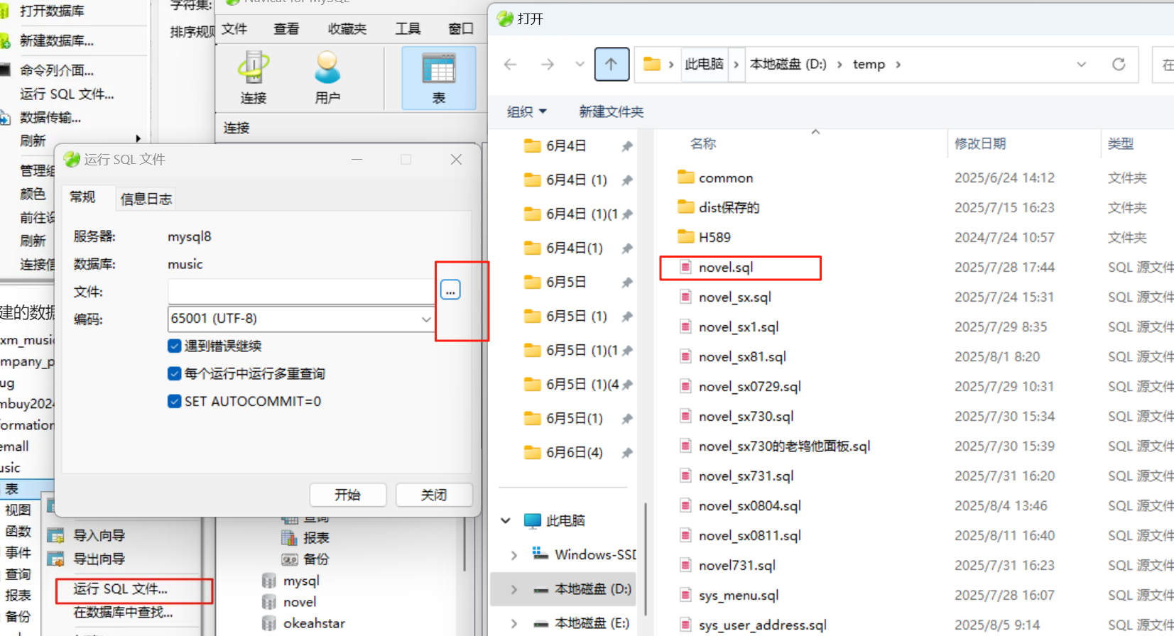 点击确定在新创建的数据库上右键“运行 sql 文件”选中你要导入的 sql 文件后 点击“开始”即可稍等片刻后