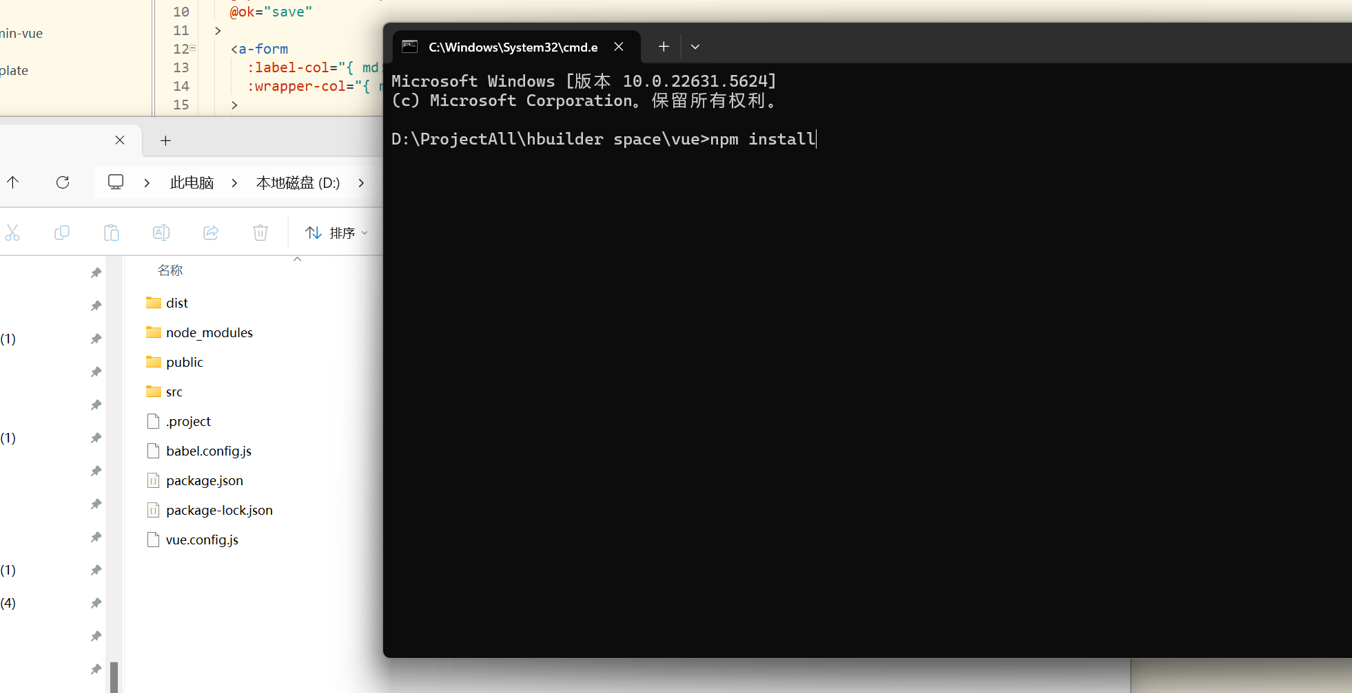 将 cmd 切换到前端目录所在路径 运行 npm install 等待程序安装完后 再运行 npm run serve 即可启动程序