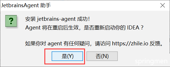然后按照提示重启idea,出现如下界面后,点击“为IDEA安装”的选项
